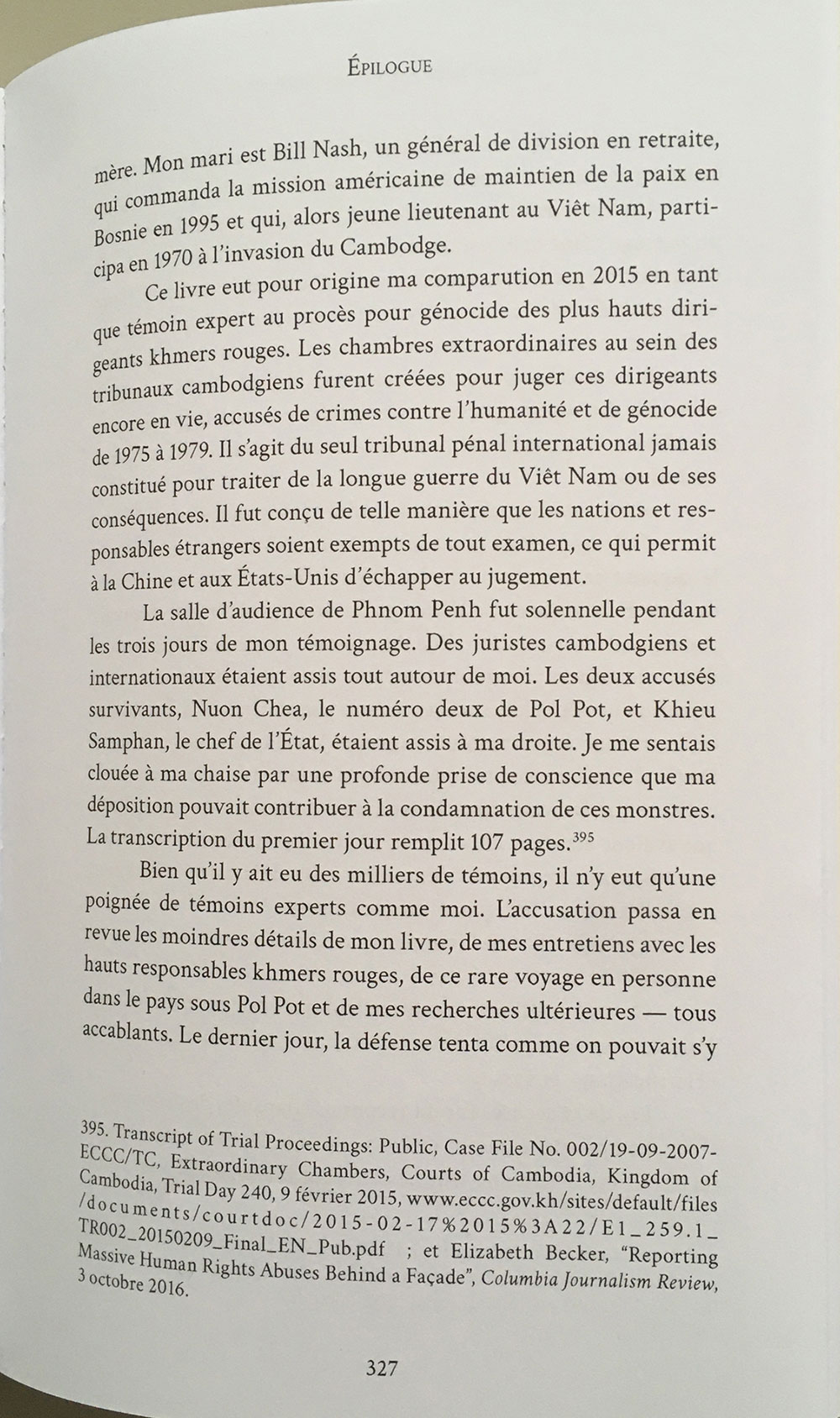 Elizabeth Becker est une journaliste et autrice américaine reconnue, lauréate de plusieurs prix. Correspondante de guerre pour le Washington Post au Cambodge dans les années 1960 et 1970, elle devient par la suite rédactrice en chef du service étranger de la radio nationale NPR puis journaliste en charge de la politique étrangère au New York Times.