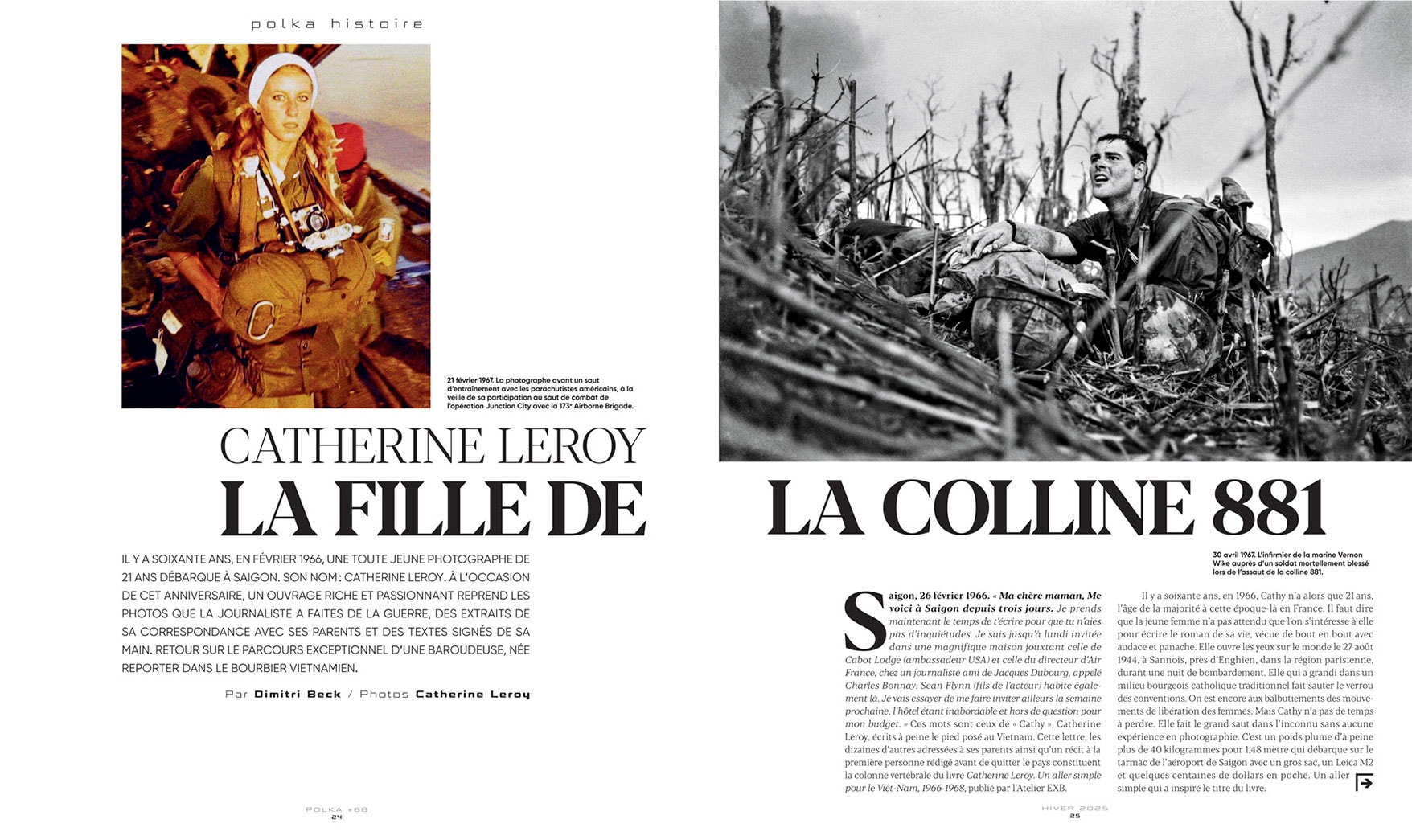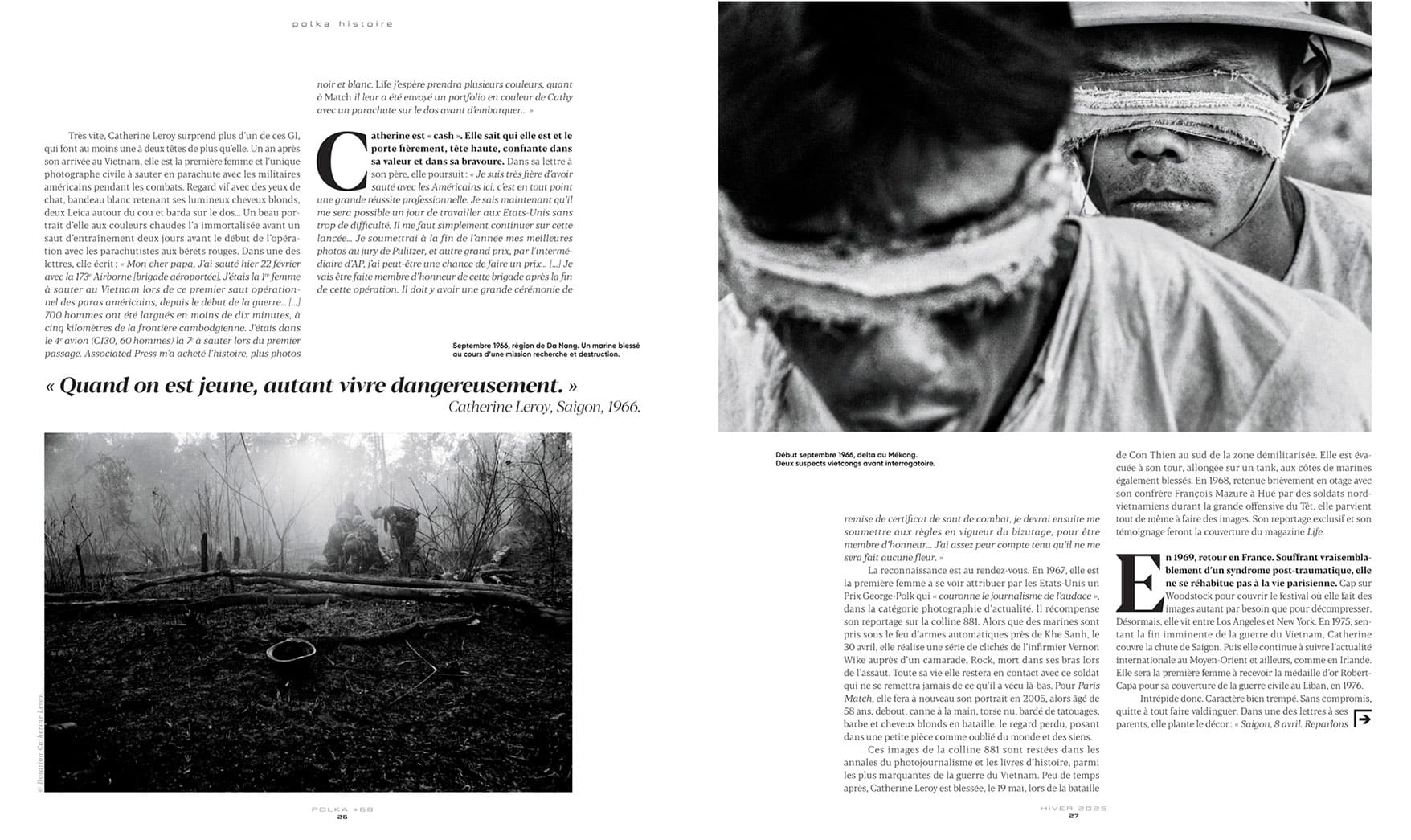 Quelques mois après avoir sauté en parachute au Vietnam avec les hommes de la 173ème division américaine aéroportée, Catherine Leroy fait la Une de Paris Match,